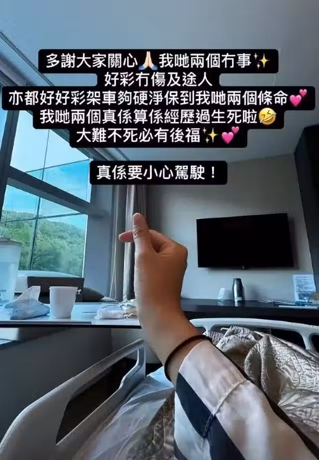 據悉,車上受傷的兩位正是陳嘉慧和其老公,事後港媒也是第一時間聯繫了陳嘉慧,她未免大家擔心,也是給予了回應,表示自己和老公受傷不是很嚴重,自己更是輕微的擦傷,但不知是否當時的衝撞力太強,所以心口那個位置還是隱隱作痛,而醫生為了確保二人其他地方沒有受傷,也是希望他們做個全面的檢查。