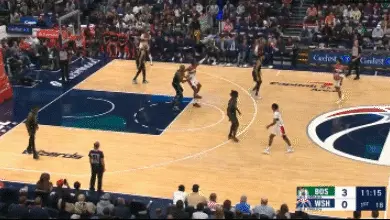 面對塔圖姆,普爾通過不斷運球來調整節奏,最終借著隊友掩護和前者拉開一定空間完成持投三分。