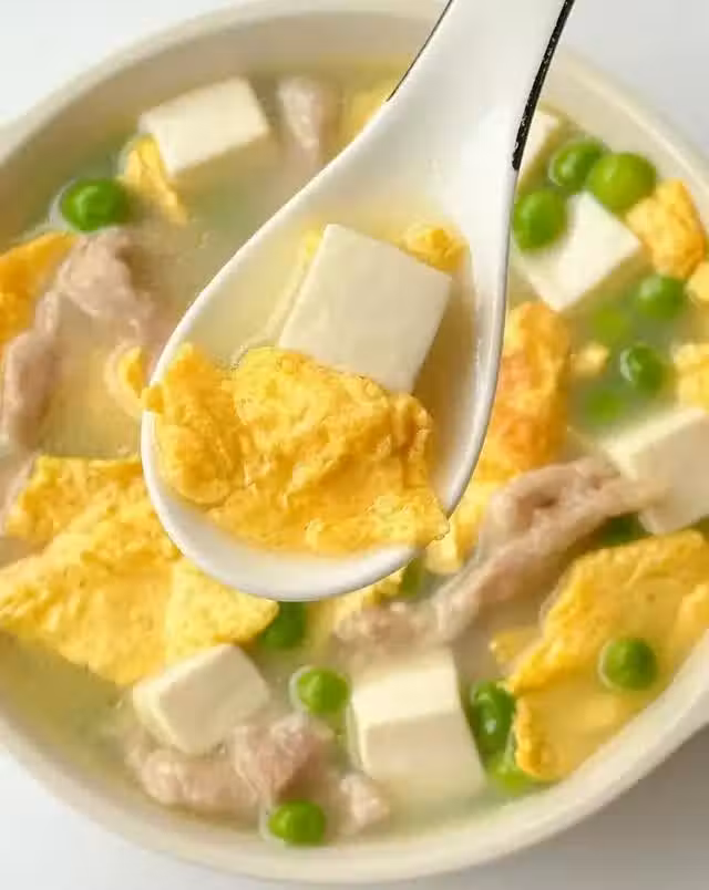 食材:豬肉,雞蛋,豌豆,豆腐