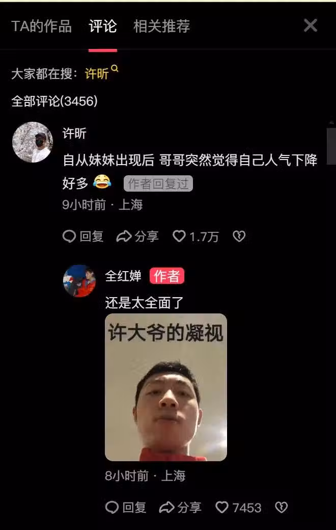 「全妹是去了上海許全面家做客,再順便去逮住東哥請吃叉燒肉嗎」