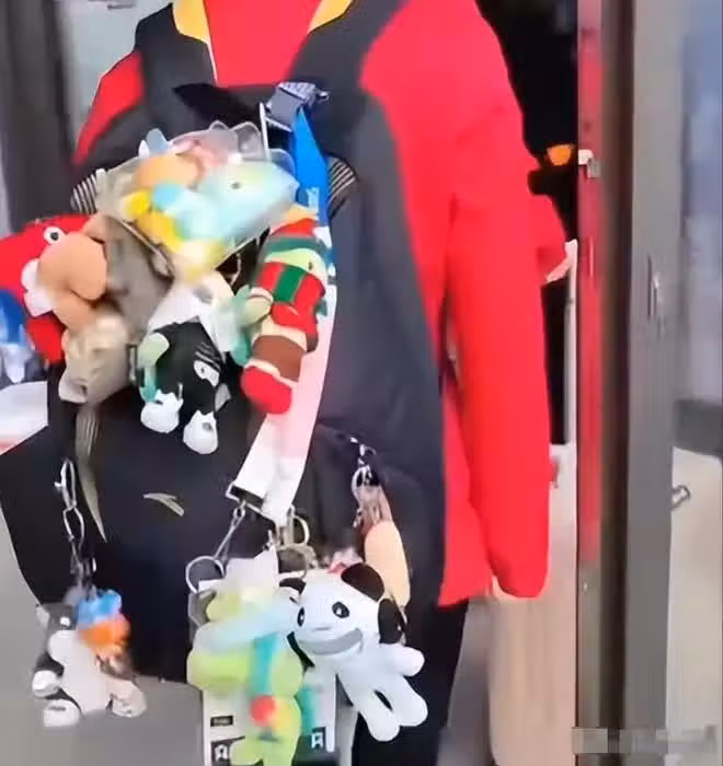 全紅嬋此時也發現有一位「尾隨者」,於是加快腳步,想要逃離現場,不料馬來西亞選手大步流星的追了上去,將書包上的毛絨玩具拍的一清二楚。