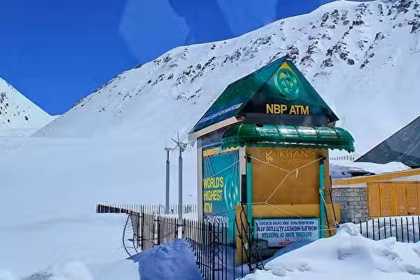 這台靠著太陽能和風力能源運作的櫃員機由巴基斯坦國家銀行(NBP)於2016年建造,擁有和其它ATM一樣的齊全功能,包括提款、存款、轉帳以及支付水電費等,主要為當地的少數族群、工作人員以及偶爾來訪的遊客提供服務,並且已經成為當地著名的景點。