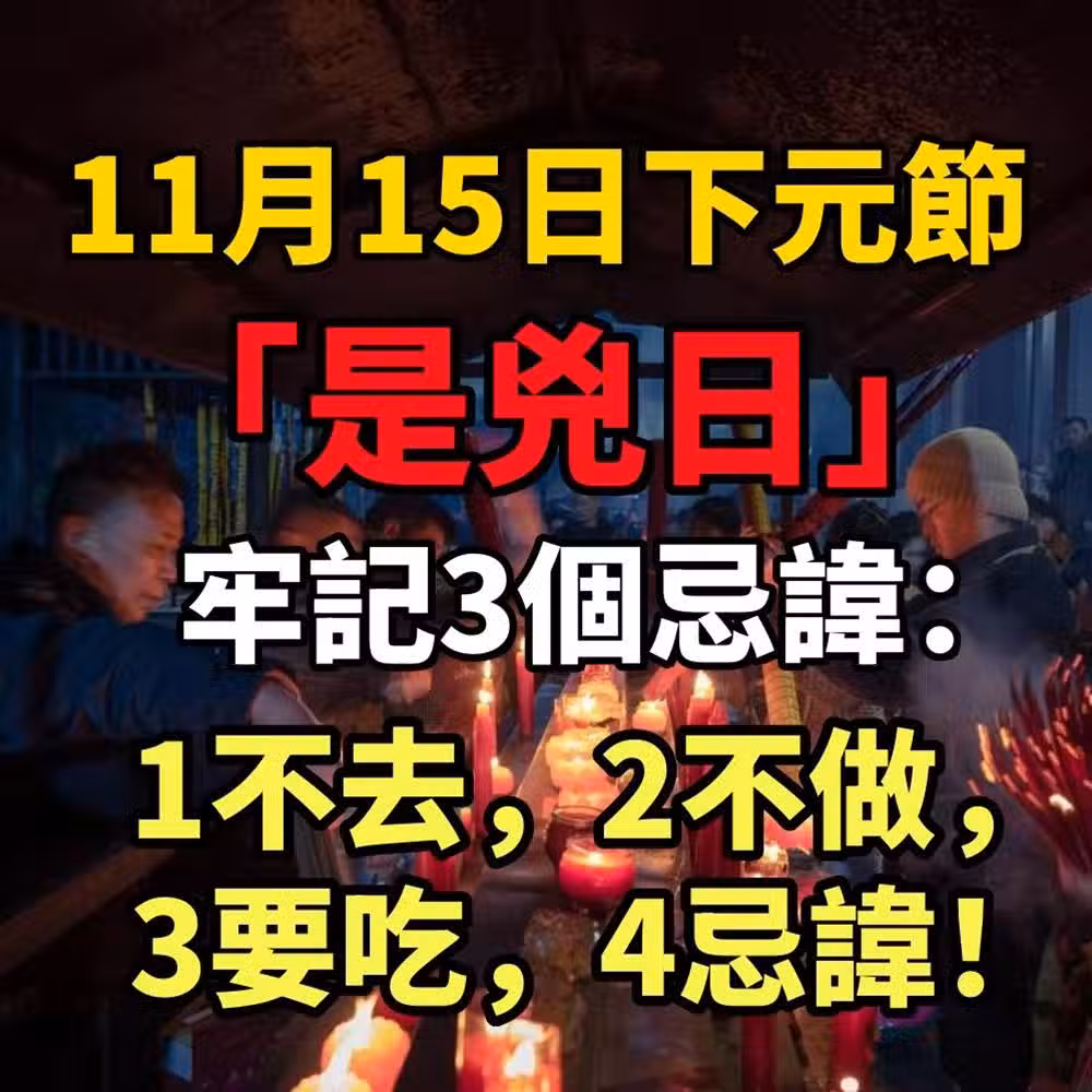 11月15日下元節是「凶日」牢記3個忌諱:1不去,2不做,3要吃,4忌諱