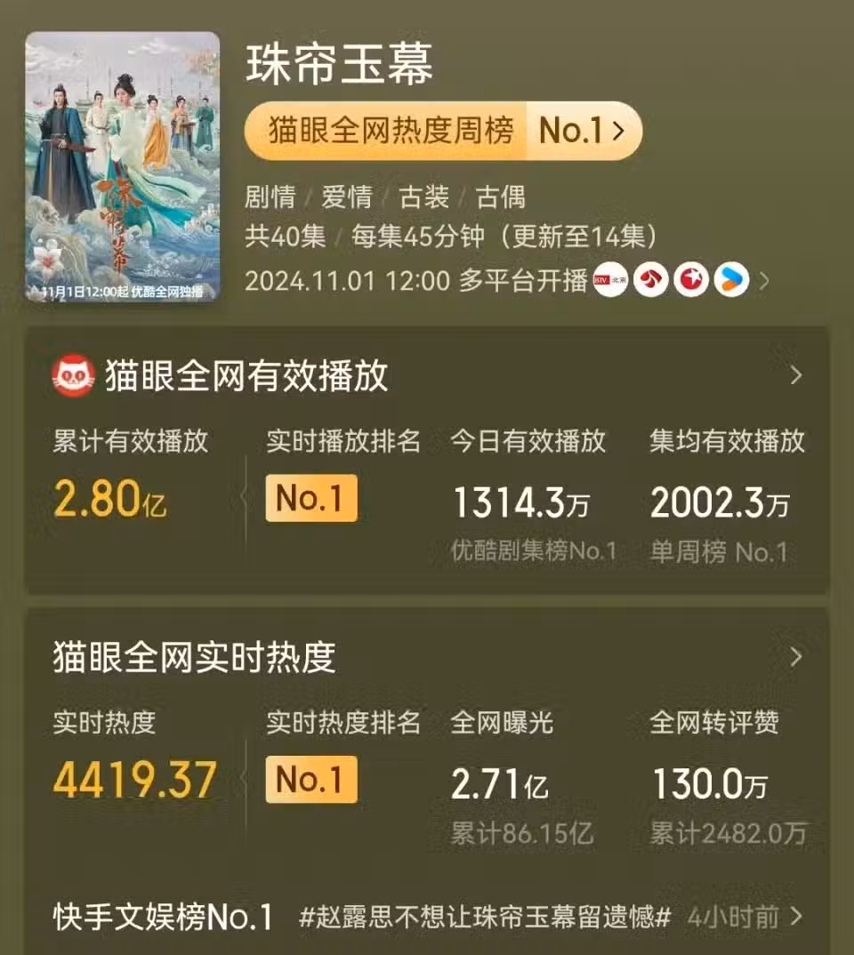 播放破2億,古裝劇榜第一,好久沒看到這麼穩的劇情了!