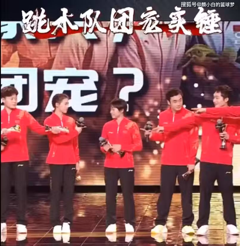 當主持人詢問:誰是跳水隊的團寵?全隊不約而同的都指著全紅嬋,全紅嬋本人也指著自己,全紅嬋是跳水隊認定的團寵。