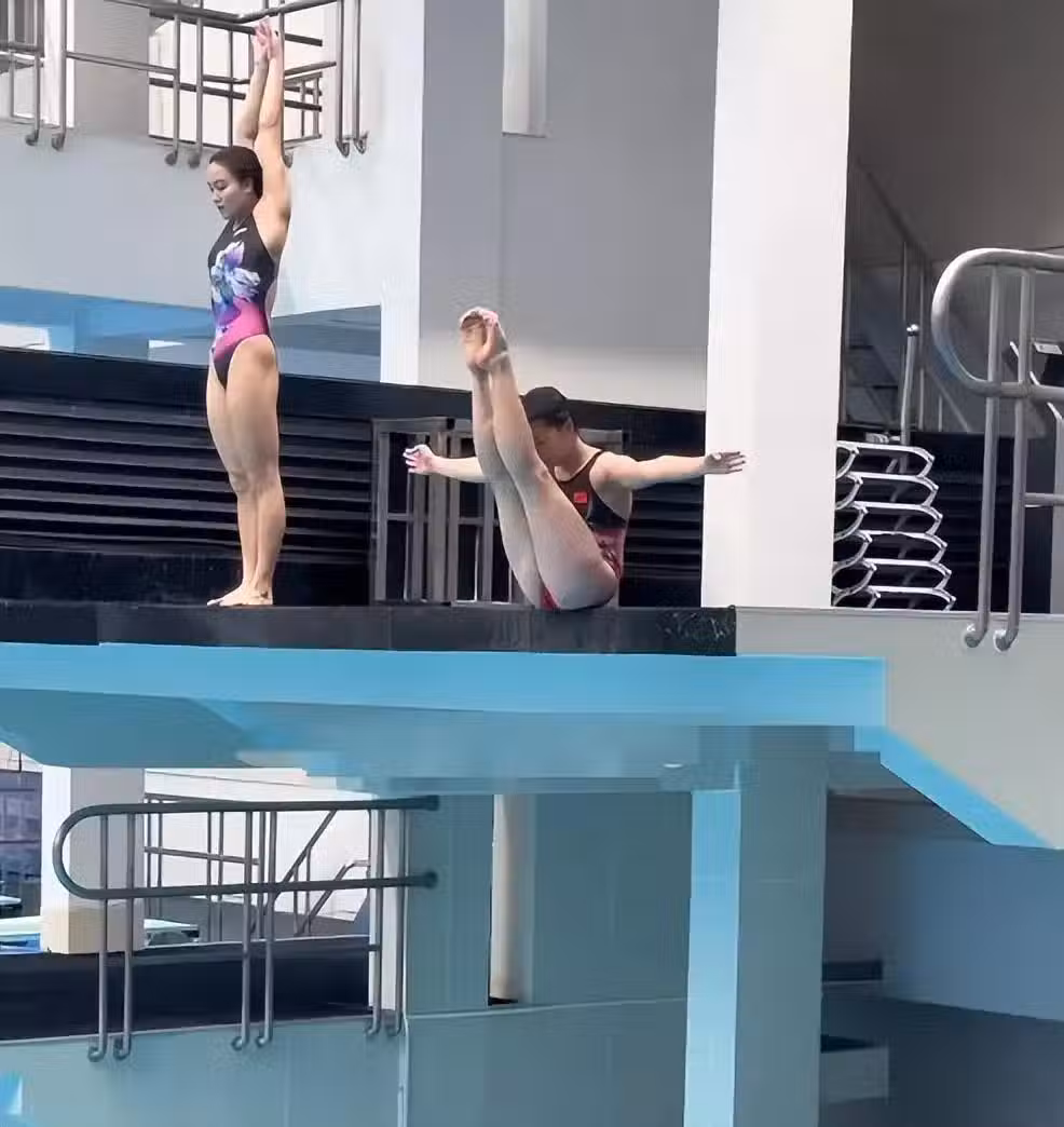 全紅嬋完成減重訓練,正式恢復跳水訓練,與小師妹李蕊汐同框跳水