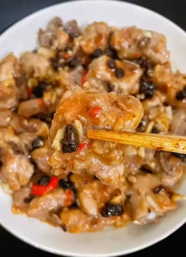 食材:排骨、豆豉、蒜末、辣椒