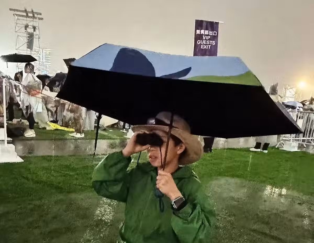 原本一場優雅的音樂會變成了歡快的雨中野餐,大人可能有負擔,但小朋友反而更開心,其實霍啟剛曬齣兒子照片細節就可以看到,現場的大人都紛紛離場,或者拿著傘站起來,他卻坐在椅子上甘之如飴,巋然不動。