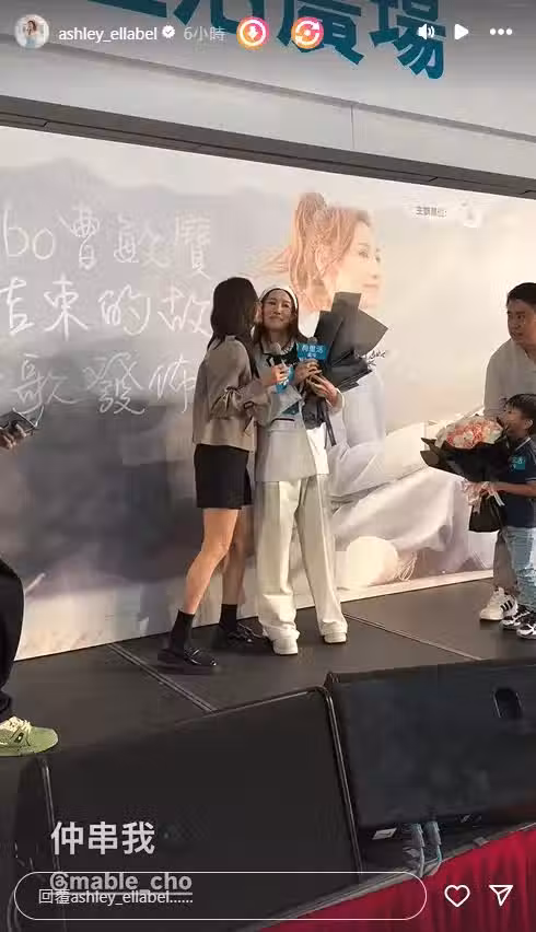 朱智賢回應道:「他好像你問這麼多幹什麼,你都不來了!我來是因為曹敏寶說《中年好聲音》時,我老是不出現,他調侃我。那時候我很忙,整天要拍戲,我記得有出現過一兩次支持他!整天拿這件事來說,所以我今天特意來他的新歌發布會!特意大老遠地來到現場支持你!希望你今天能感受到我對你的愛!不要再調侃我了!」情傷的朱智賢面對老友曹敏寶的問題,反應快,但答覆時顯得有點緊張,或許不多不少受到分手影響。