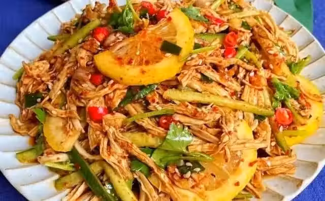 雞腿,檸檬,香菜,蒜,黃瓜,料酒,姜,生抽,醋,蚝油,辣椒油