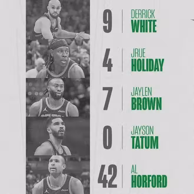 騎士少投進5記三分,但是只落後6分,原因在於內線防守太強,凱爾特人在籃下機會不多。莫布利進化了,第一節頻頻給阿倫送出助攻。第二節兩隊陷入拉鋸戰,騎士本來追到4分,結果霍勒迪和塔圖姆下起三分雨,分差來到兩位數。