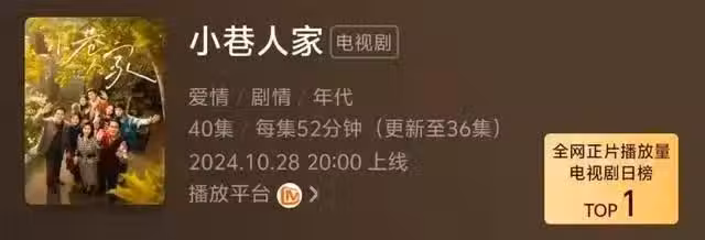 《小巷人家》的將胡同巷子兩代人的愛恨情仇的家庭故事,緩緩道來,詮釋了何為『低開高走』。