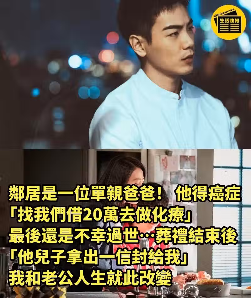 鄰居是一位單親爸爸! 他得癌症「找我們借20萬去做化療」最後還是不幸地過世…葬禮結束後「他兒子拿出一信封給我」我和老公人生就此改變