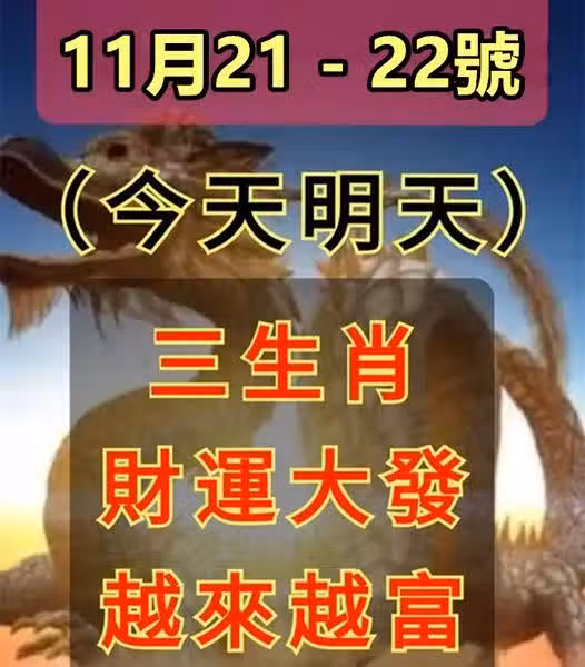 11月21 到 22號(今天明天)三生肖「財運大發」「越來越富」!
