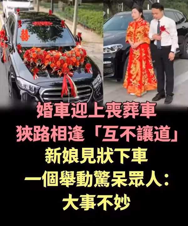婚車迎上喪葬車狹路相逢「互不讓道」,新娘見狀下車一個舉動驚呆眾人:大事不妙!