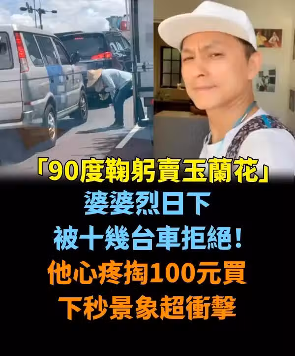 「90度鞠躬賣玉蘭花」婆婆烈日下被十幾台車拒絕!他心疼掏100元買,下秒景象超衝擊!
