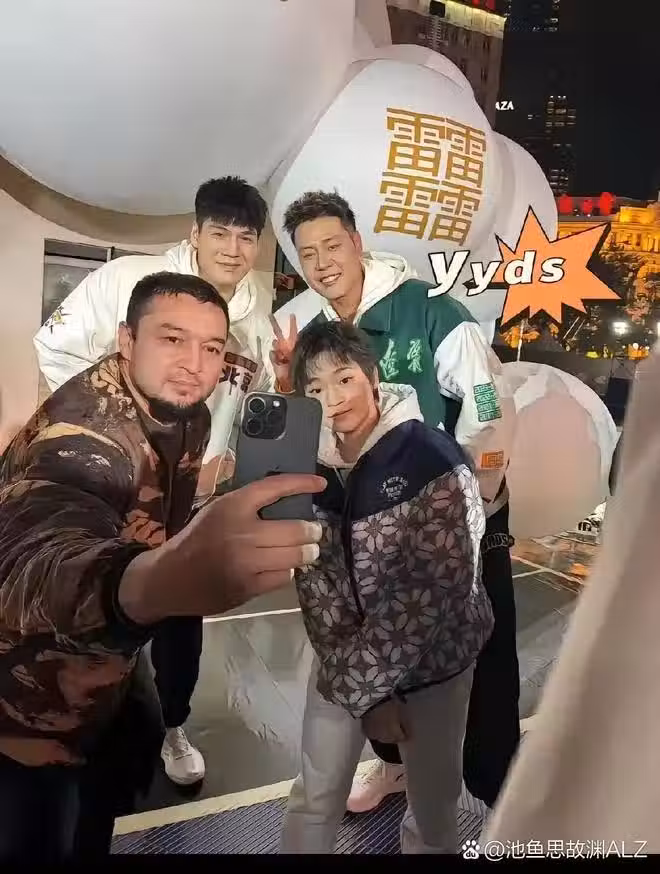 看到全紅嬋,籃球運動員們也很開心,四個人一起進行了大合影,西熱力江還單獨找全妹合照留念,氣氛非常熱烈。