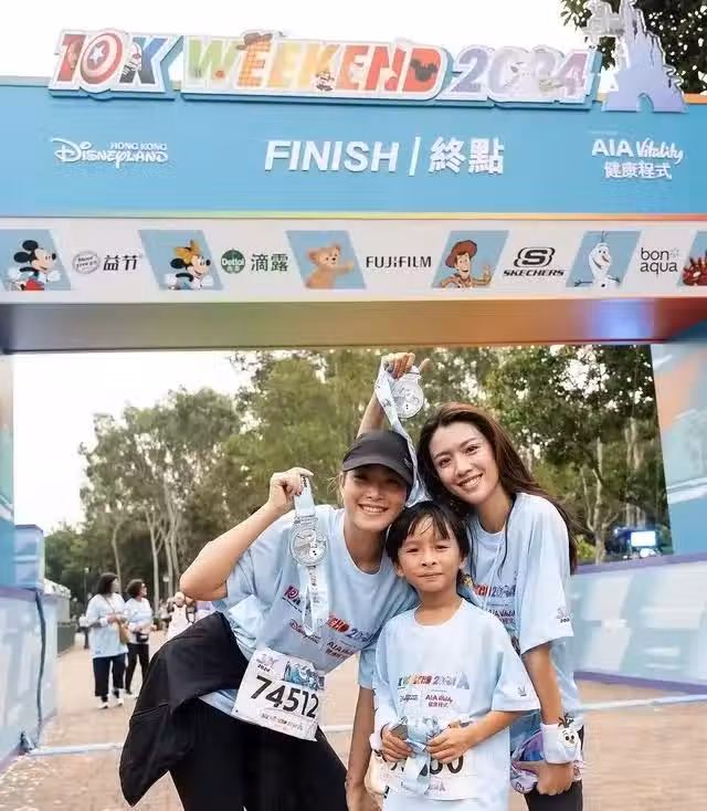 除了工作外,賴慰玲還要照顧家中的大兒子,要知道小傢伙已經到了上學的年紀,此前他報名了跑步比賽,雖然媽媽賴慰玲不能陪同一起跑,但是有兩位乾媽陪伴,其中一位乾媽更是大家熟悉的TVB視後蔡思貝。