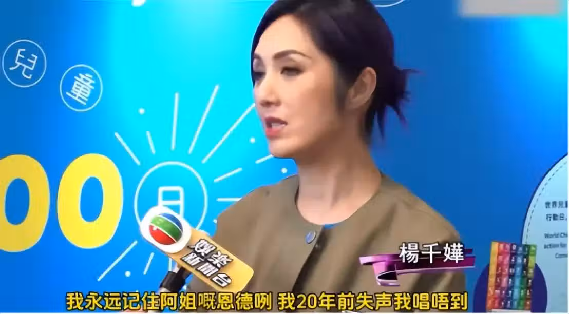 原來,在20年前楊千嬅的演唱會上,楊千嬅在開唱前忽然身體不適失了聲,焦急到發不出聲來,本來要擔當合唱嘉賓的汪明荃溫柔地安撫楊千嬅:沒關係,那我來唱吧。