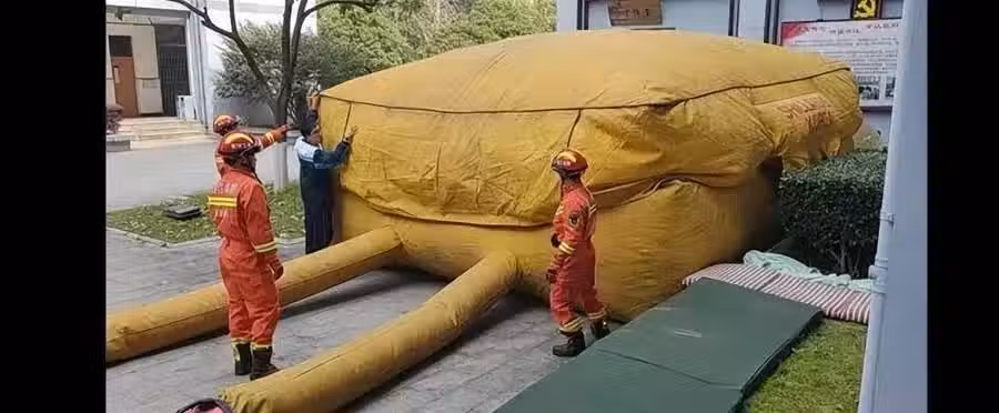 警方通過擴音器勸解兩人不要犯傻,為救援隊鋪設救生氣墊爭取時間,而隨行而來的醫護人員則是時刻準備給予救援。