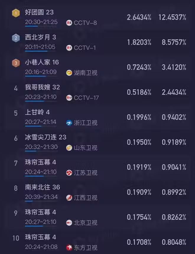 自從戰爭大劇《上甘嶺》結束之後,《好團圓》就一直占據著全國收視冠軍的寶座。