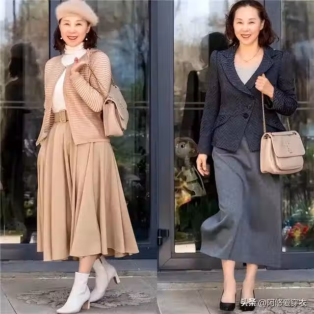 中老年女人穿裙子時,儘量不要配大衣、羽絨服,換成這幾種更洋氣