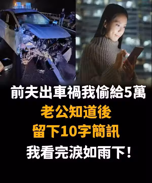 前夫出車禍我偷給5萬,老公知道後留下10字簡訊,我看完淚如雨下!
