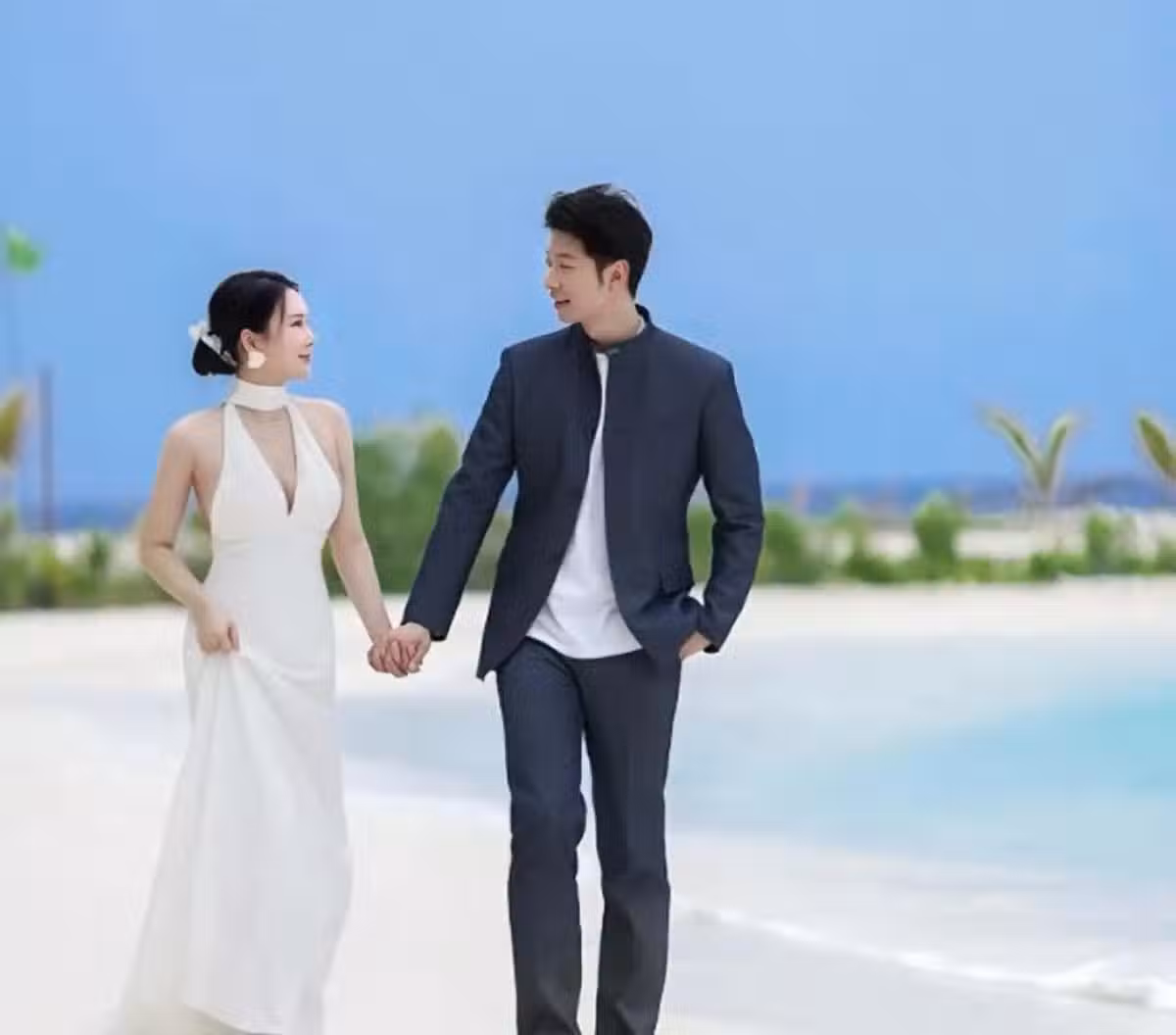 這次曝出的多張正面照,可以看到兩人確實相當般配。不僅有去馬爾地夫拍的浪漫婚紗,還有妻子挺著孕肚的孕期照,可以說高鈞賢非常幸福。