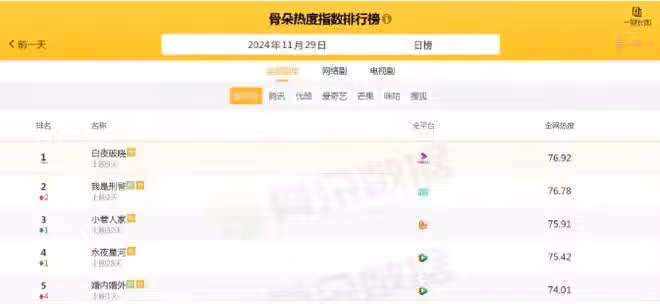 電視劇全網熱度榜,《我是刑警》跌至第二,第一熱度高達76.92