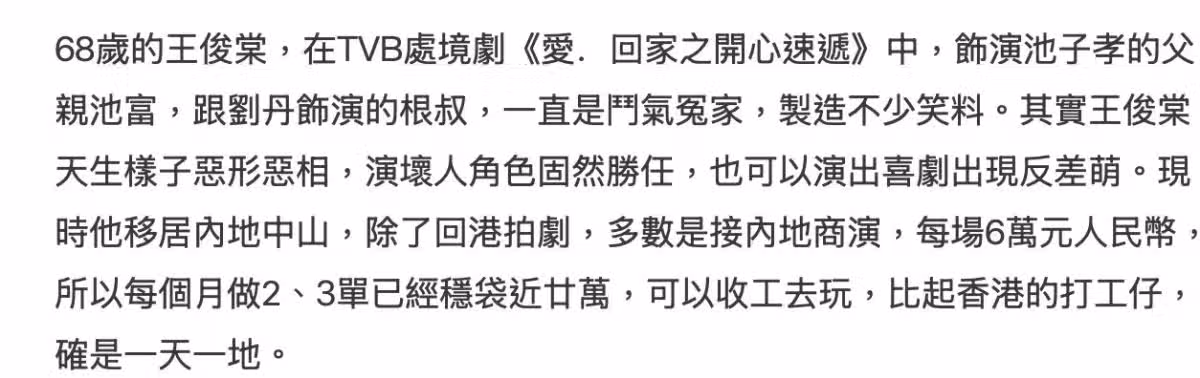 68歲TVB綠葉移居中山養老,每月僅接三場商演,月賺18萬四處遊玩