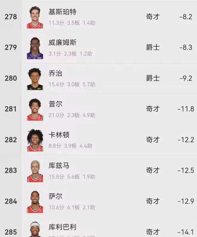 球員的正負值往往是與球隊戰績掛鉤,於是普爾庫茲馬等主力核心正負值那麼糟糕,跟奇才迄今為止僅2勝16負的「壯舉」分不開關係,正成為25屆准狀元弗拉格的最有利爭奪者。