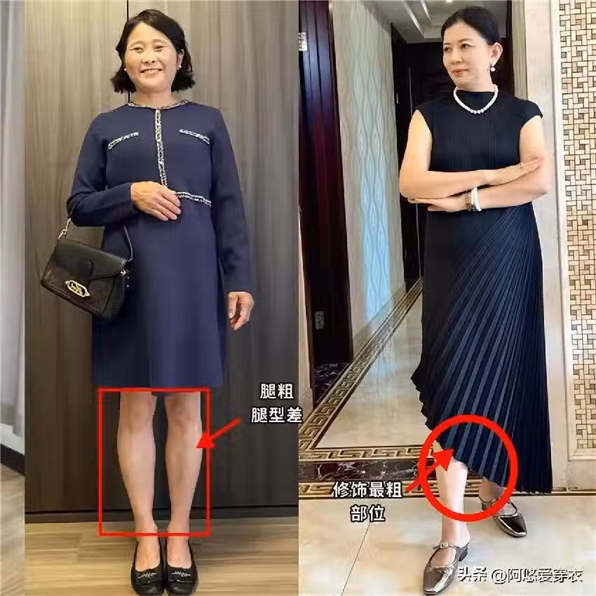 point②裙長選擇很關鍵,腿粗要選過膝款