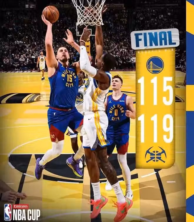12月4日訊,NBA杯勇士客戰掘金。比賽開始兩隊就迅速進入狀態,雙方都以極高命中率交替拿分,掘金在輪換階段靠著威少和沃特森的三分取得2分領先;次節庫里三分線外開炮幫助勇士反超比分,掘金在約老師的帶領下打出一波15-3小高潮,半場結束時雙方戰成57平;易邊再戰,穆雷快速反擊上籃得手,約基奇穩紮穩打控制場上局勢,庫明加和維金斯幫助勇士緊追不捨,三節結束掘金領先5分;末節決戰,場面風雲突變,被動挨打的勇士轟出24-8攻擊波,關鍵時刻約老師扛起球隊,回敬21-6的高潮。最終,掘金119-115險勝勇士。