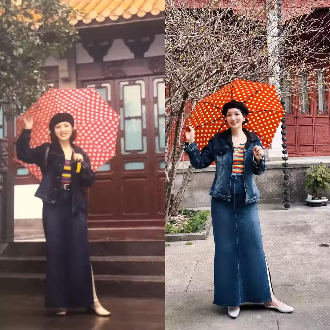 網友穿20年前媽媽的衣服,發現:時尚確實退步了,難怪爸爸嫌我土
