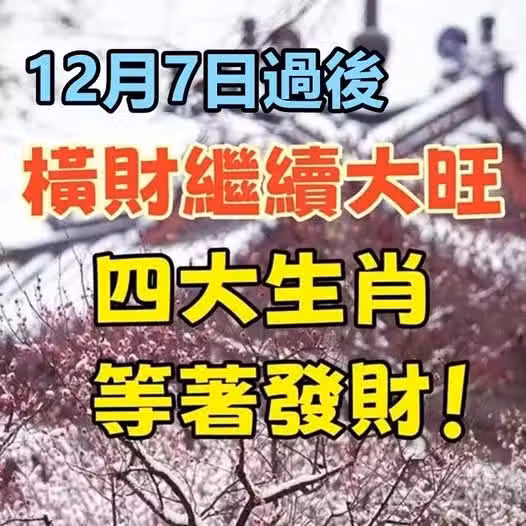 12月7日過後,橫財繼續大旺,四大生肖等著發財!