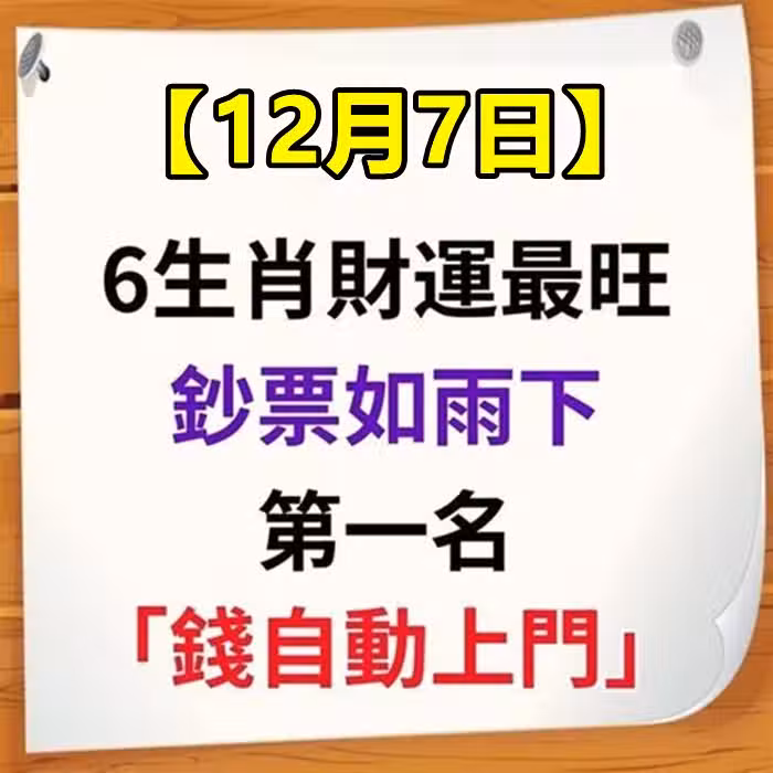 12月7日有偏財,鈔票如雨下的生肖! 第1名「錢自動上門」