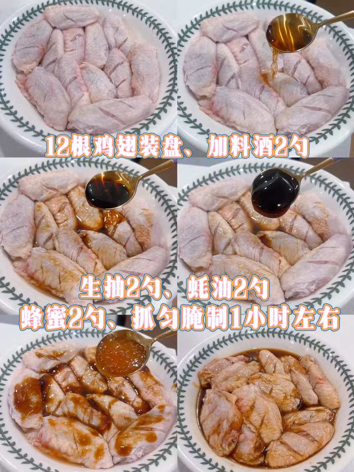 2)加料酒2勺、生抽2勺、蚝油2勺、蜂蜜2勺