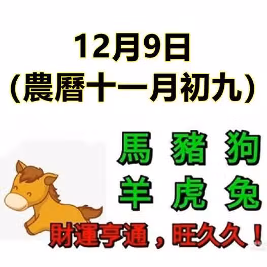 小運播報:2024年12月9日,星期一,農曆十一月初九,法定工作日。