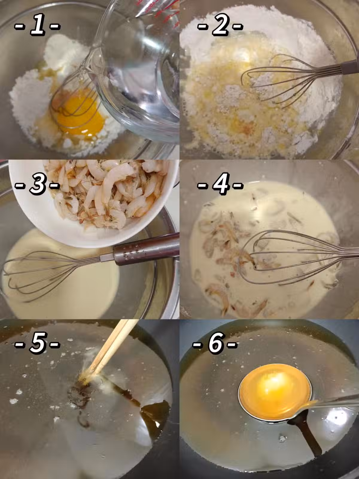 -把去頭的小白蝦放進去麵糊攪拌均勻,備用