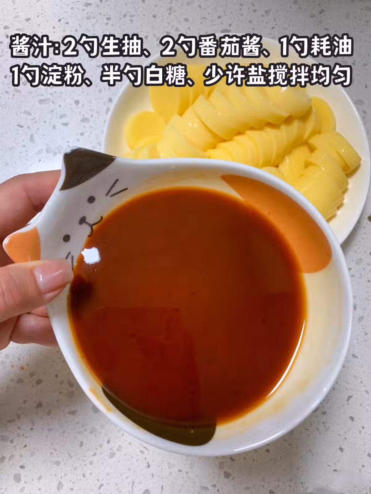 醬汁: 2勺生抽、2勺番茄醬、1勺耗油、1勺澱粉、半勺白糖、少許鹽攪拌均勻