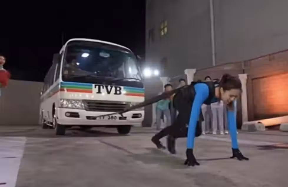 好拼!TVB長腿女神直播拼盡全力表演人拉車,遭網友質疑造假