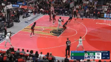 雖然沒有助跑空間,但瓦蘭還是在原地封蓋掉了對手的投籃。