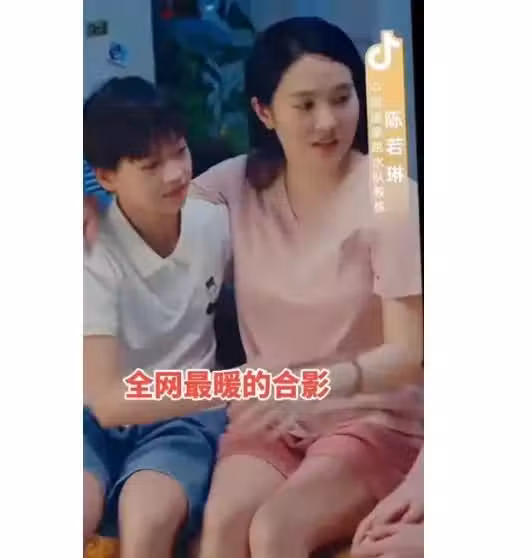 就是那張,全紅嬋摟著陳若琳的腰,陳若琳手搭在全紅嬋肩上,兩個人笑得那麼甜,那麼自然。