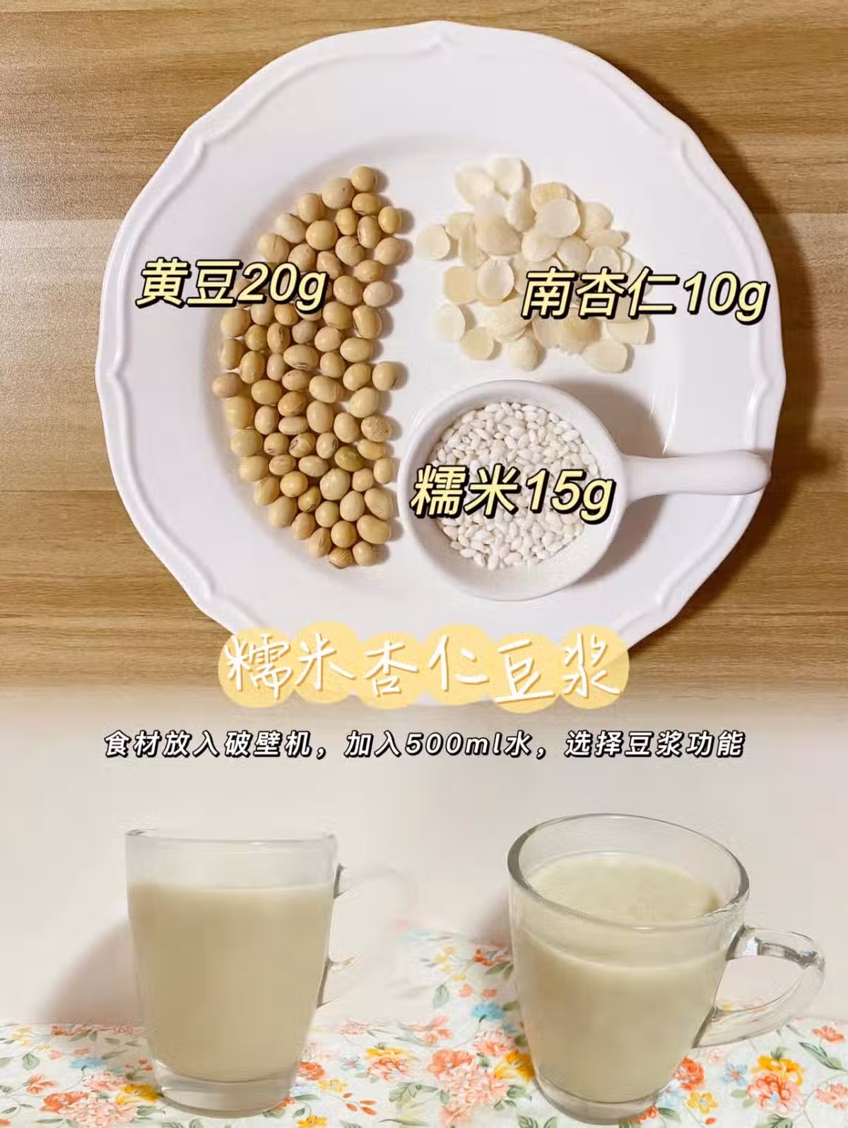 糯米健脾養胃,南杏仁美白養膚,黃豆調節內分泌、富含植物蛋白質