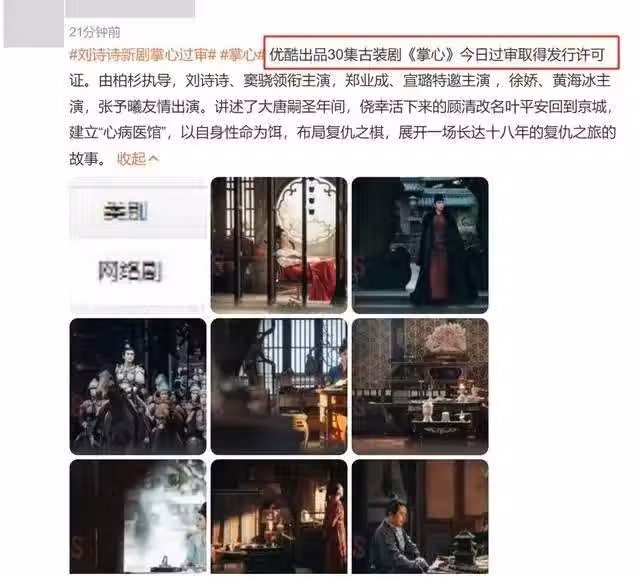 首播將至!劉詩詩30集古裝劇《掌心》來襲,這才是觀眾愛看的懸疑劇~