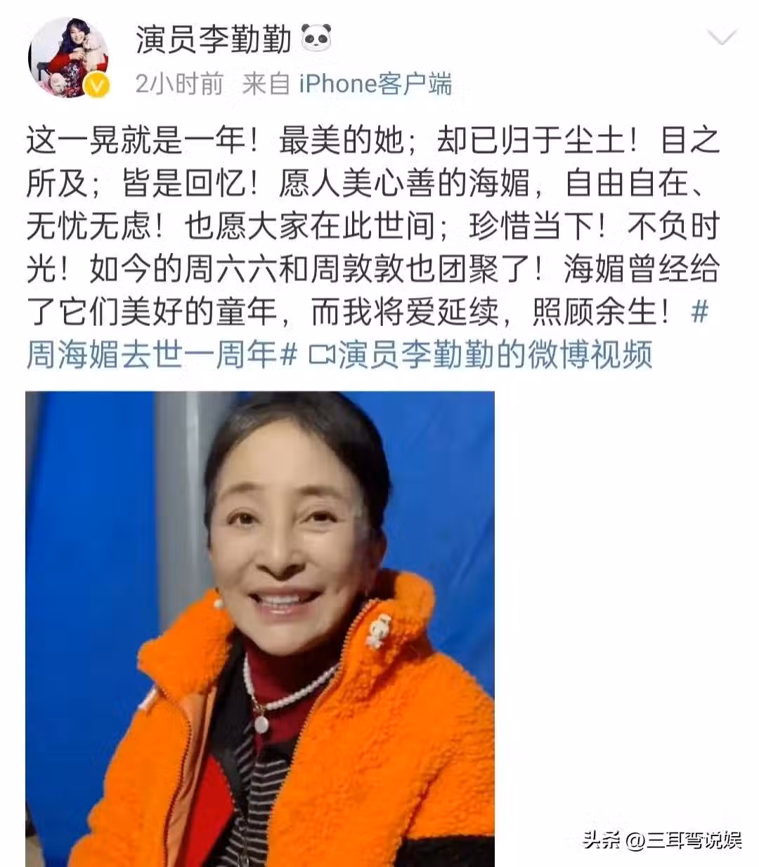 李勤勤也發文懷念周海媚,雖然一直以來不乏有人質疑李勤勤是為了流量,但是如今一年過去,她的一舉一動都被大家看在眼裡,感動在心裡,一家人對六六和墩墩都是真心。