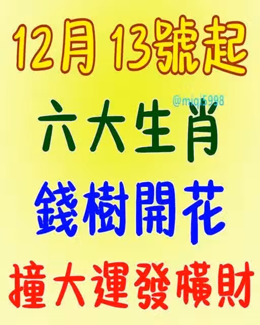 嘿,各位小夥伴,你們的耳朵洗乾淨沒?因為接下來的消息,保證讓你一聽就心跳加速,兩眼放光!12月13日,宇宙的神秘力量開始偏愛四位生肖小夥伴,他們即將開啟「躺贏」模式,橫財如雨下,富貴花開,福祿不請自來!想知道是哪些生肖即將走上人生巔峰,享受錢多多、福滿滿的神仙日子嗎?
