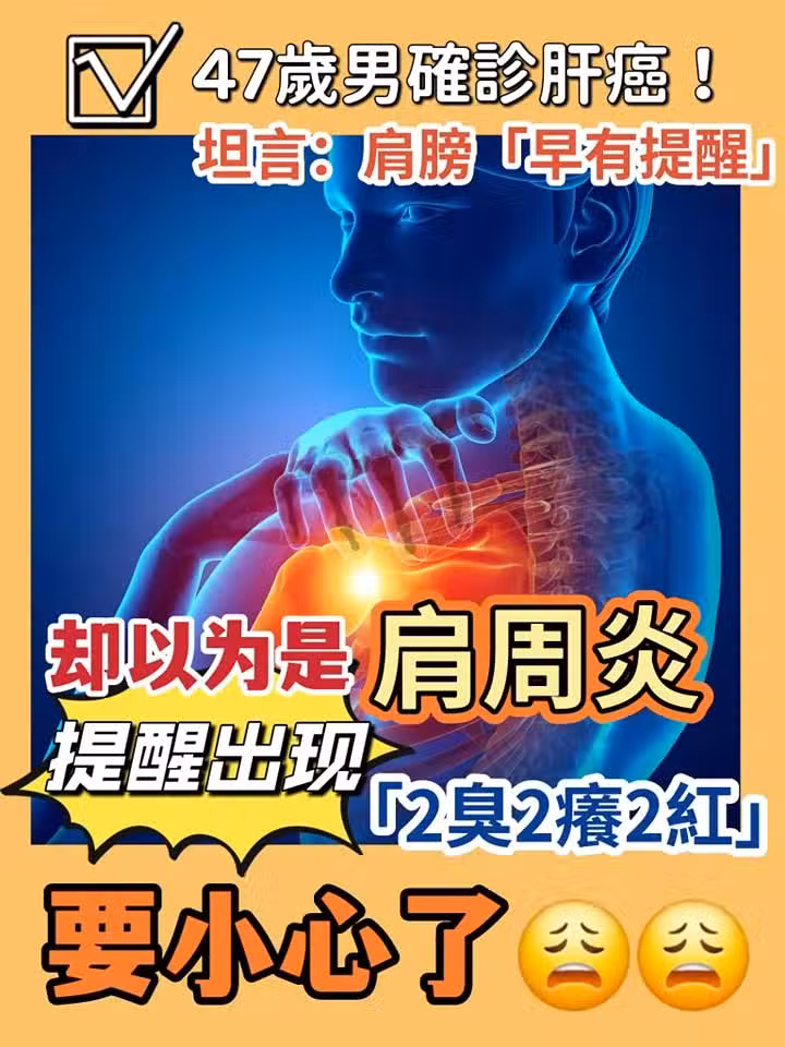 47歲男確診肝癌!坦言:肩膀「 早有提醒 」卻以為是肩周炎 提醒出現「2臭2癢2紅」要小心了~