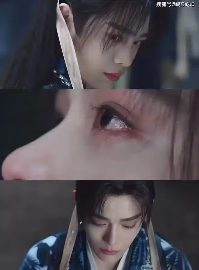 最後,為了保護愛人而擊向自己的那一掌,幾秒鐘內,眼神在黑與白之間瘋狂切換,完美展現了角色的掙扎感。