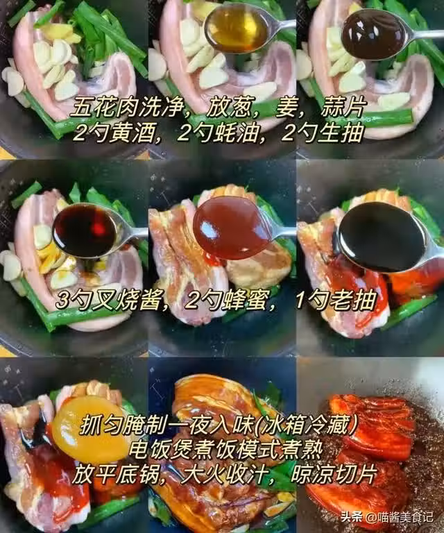 6.待煮飯鍵跳起,說明叉燒肉已經完成,取出叉燒肉並剁成薄片備用。
